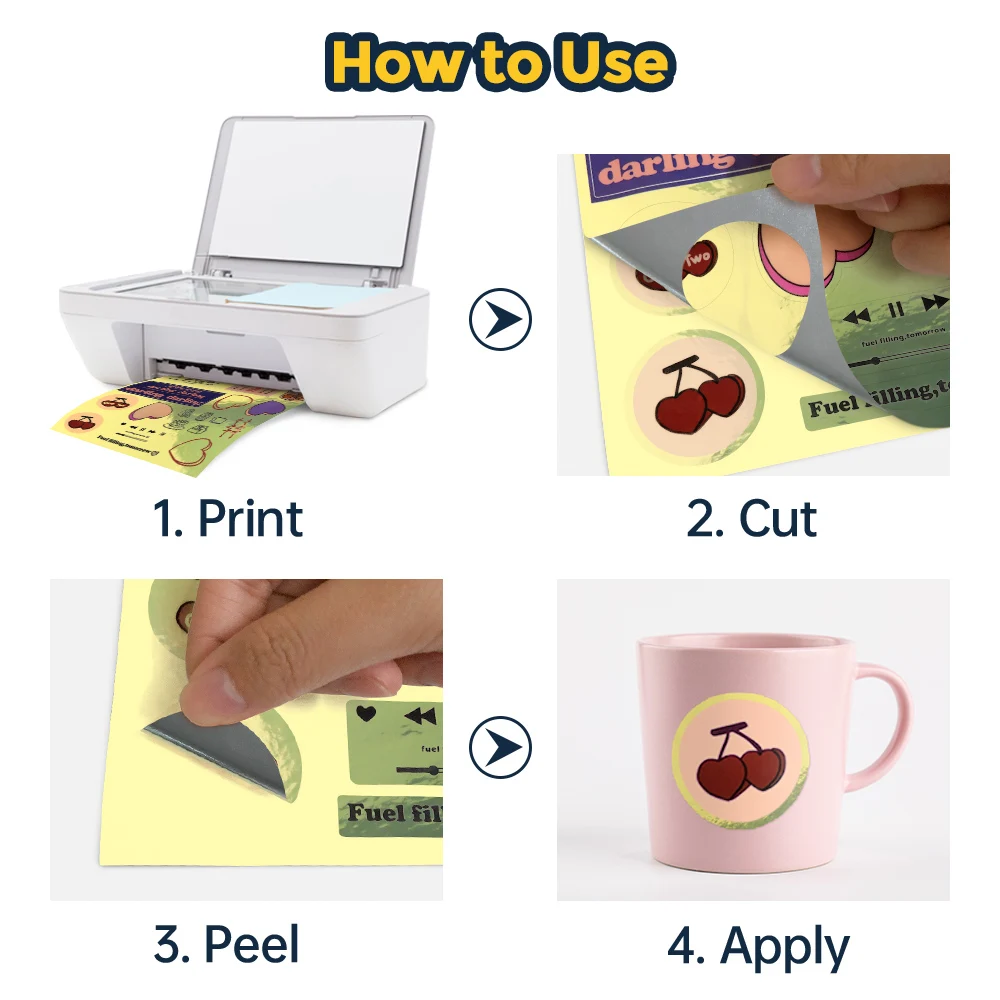 10 Sheets Printable Vinyl Sticker Paper A4 Transparent White Gold Self Adhesive Copy Paper for Inkjet Printer DIY Label Sticker