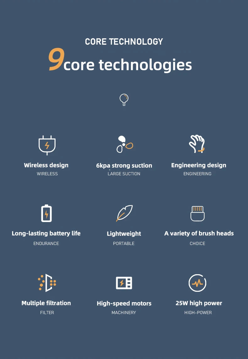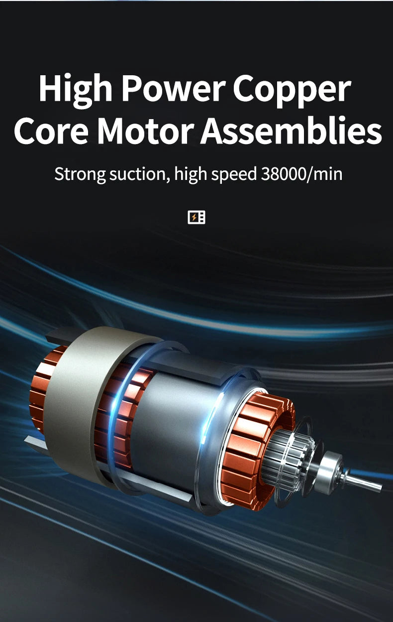 5.Compact and Portable Design: Our wireless car vacuum cleaner is designed to be compact and portable, allowing you to take it anywhere you need it. Whether you're cleaning your home, office, or car, our lightweight vacuum cleaner is easy to carry and maneuver. Enjoy the convenience of on-the-go cleaning without sacrificing power or performance. Its sleek and stylish design makes it a practical and stylish addition to your cleaning arsenal.