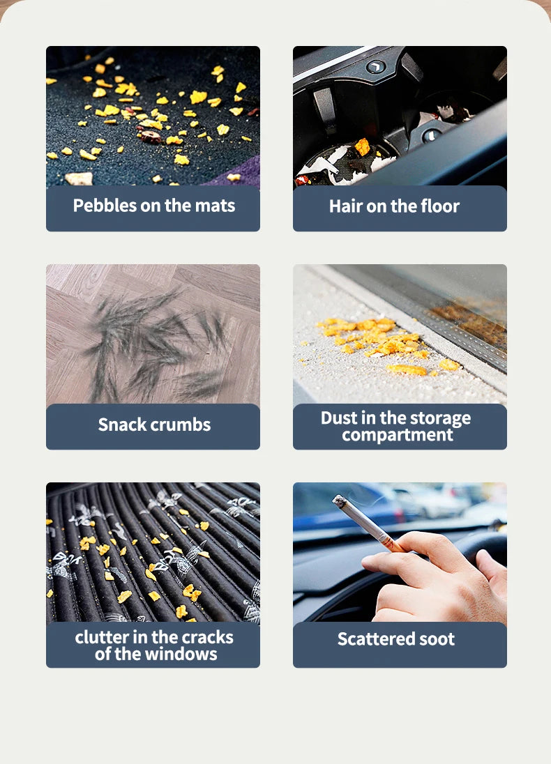 3.Versatile Cleaning Options: Our handheld vacuum comes with soft brush attachments that gently absorb dust, ensuring the protection of delicate leather floors and other sensitive surfaces. Experience versatile cleaning capabilities that cater to different cleaning needs. From hardwood floors to upholstery, our vacuum cleaner is designed to handle a wide range of surfaces, making it suitable for use throughout your home and car.