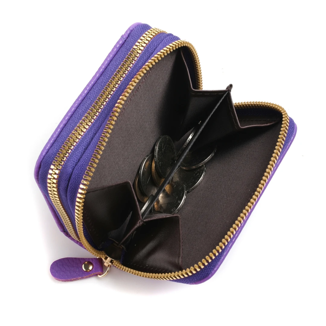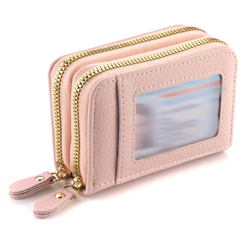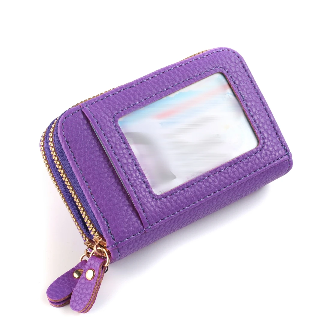 Women's Leather Credit Card Holder Double Zipper with ID Window and Coin Purse - Securely Store and Organize Your Cards with Lar