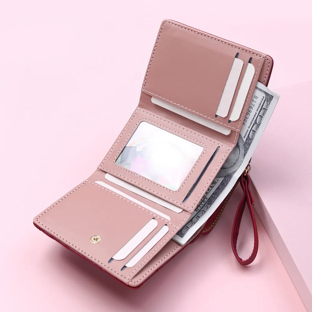 Women's Short Embroidered Love Zero Wallet Zipper Buckle Large Capacity Card Bag Versatile Fashion Simple
