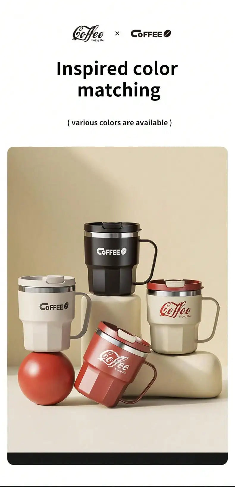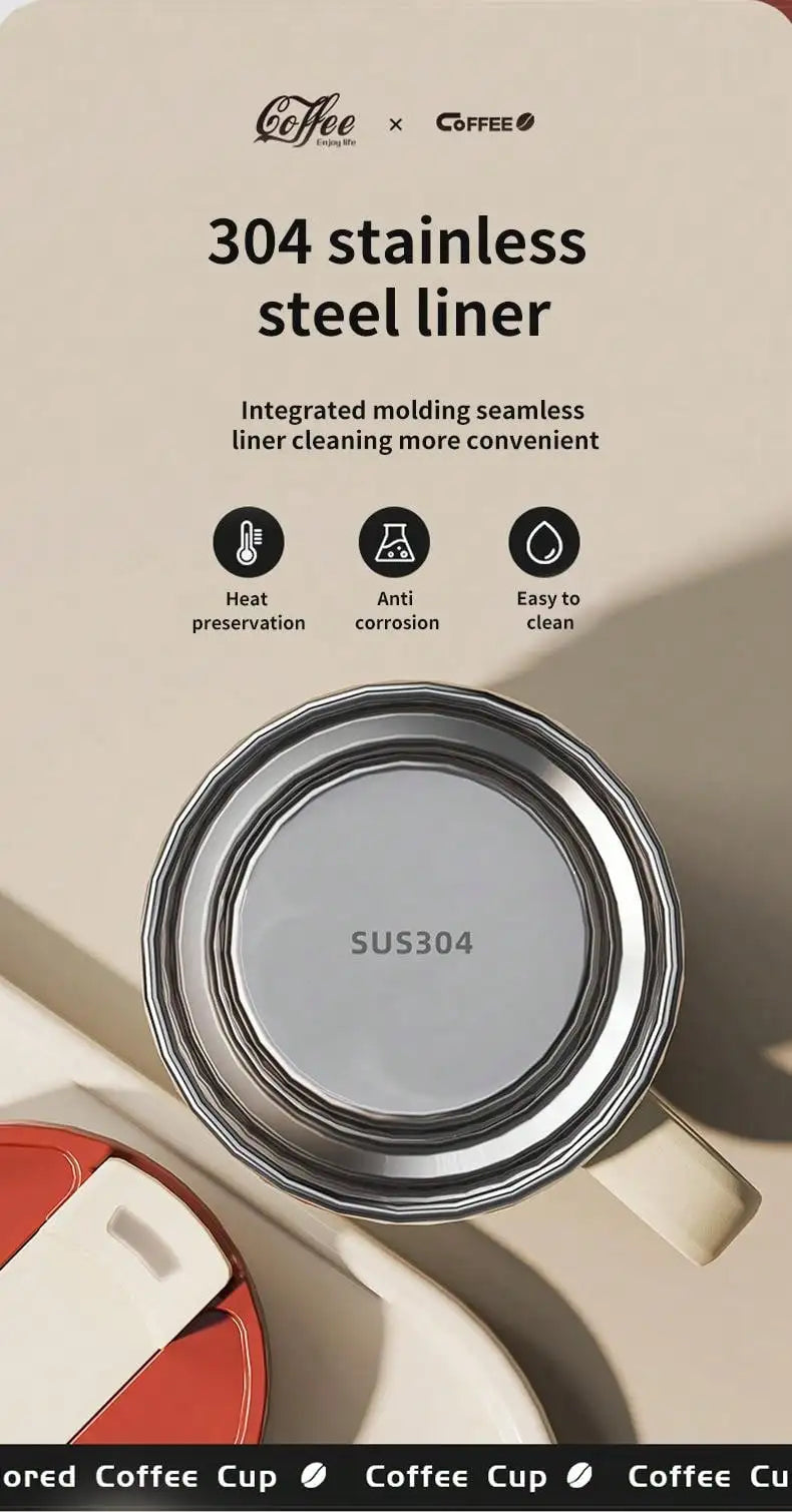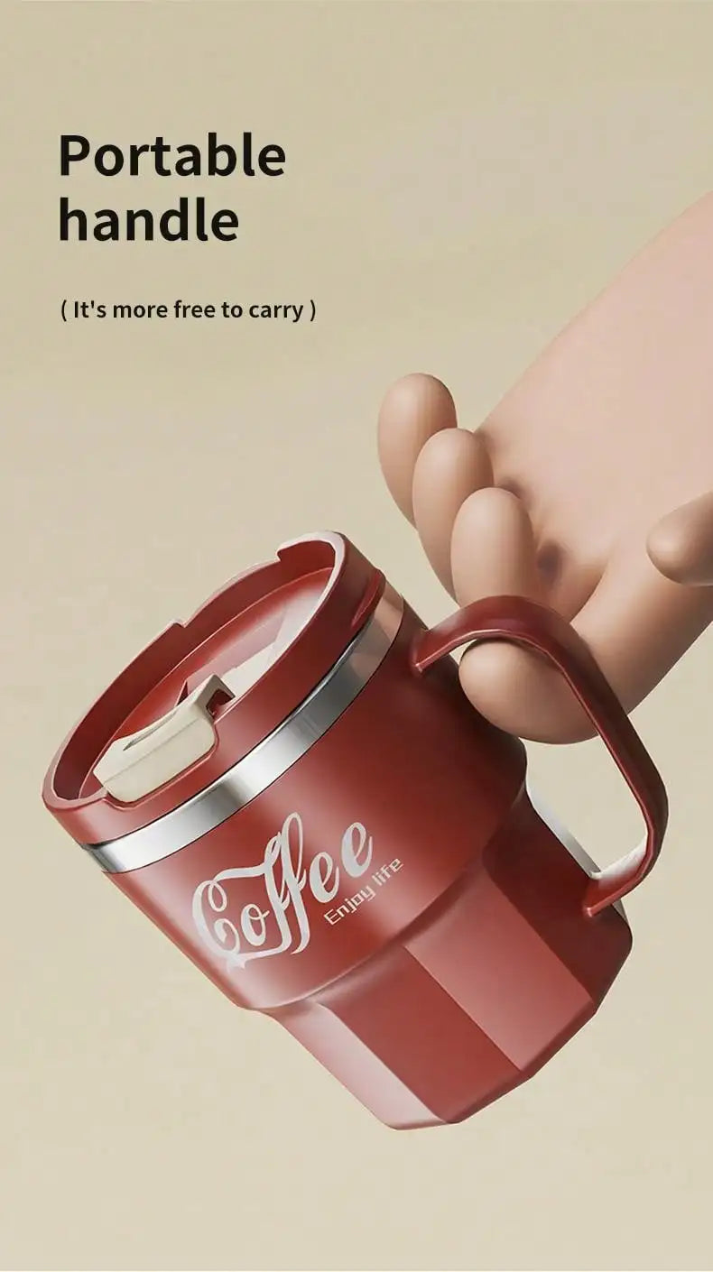 WORTHBUY 400/480ML 304 Stainless Steel Coffee Cup With Lid&Handle Double Layer Coffee Mug Drinkware Reusable Insulated Water Cup