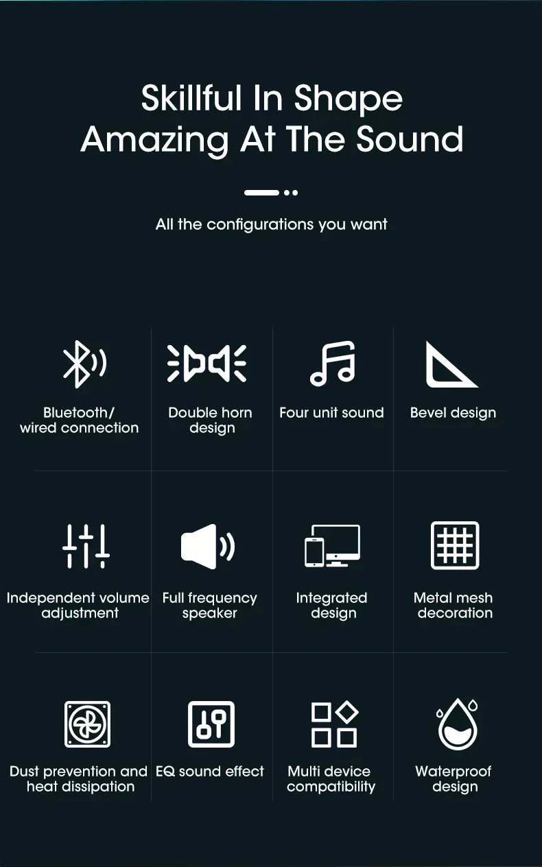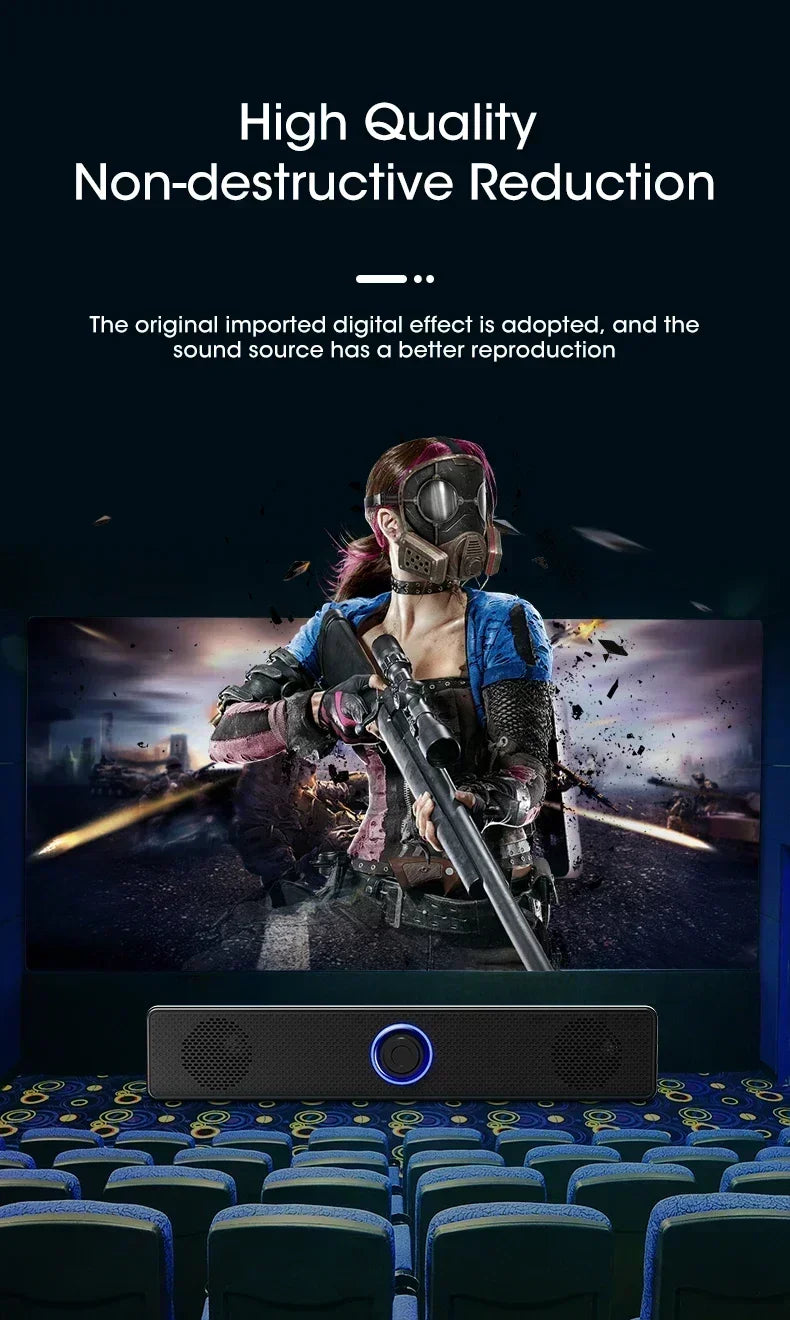 • Bluetooth Connectivity :Experience seamless audio transmission with PC Soundbar's Bluetooth connectivity, perfect for TV, PC, and laptop use.