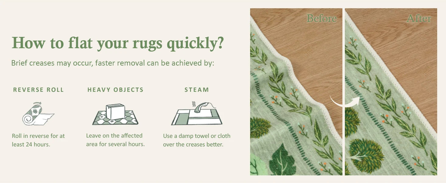 When you receive the carpet, there may be some creases. After a period of normal use,the creases will gradually disappear